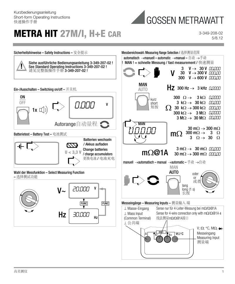 metrahit-27多用表中文多語言快速操作手冊